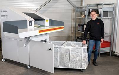 Dieser robuste und langlebige Großmengen-Aktenvernichter ist dank seines großen Durchsatzes optimal für den Einsatz in Archiven oder Zentralstellen zur Aktenvernichtung.