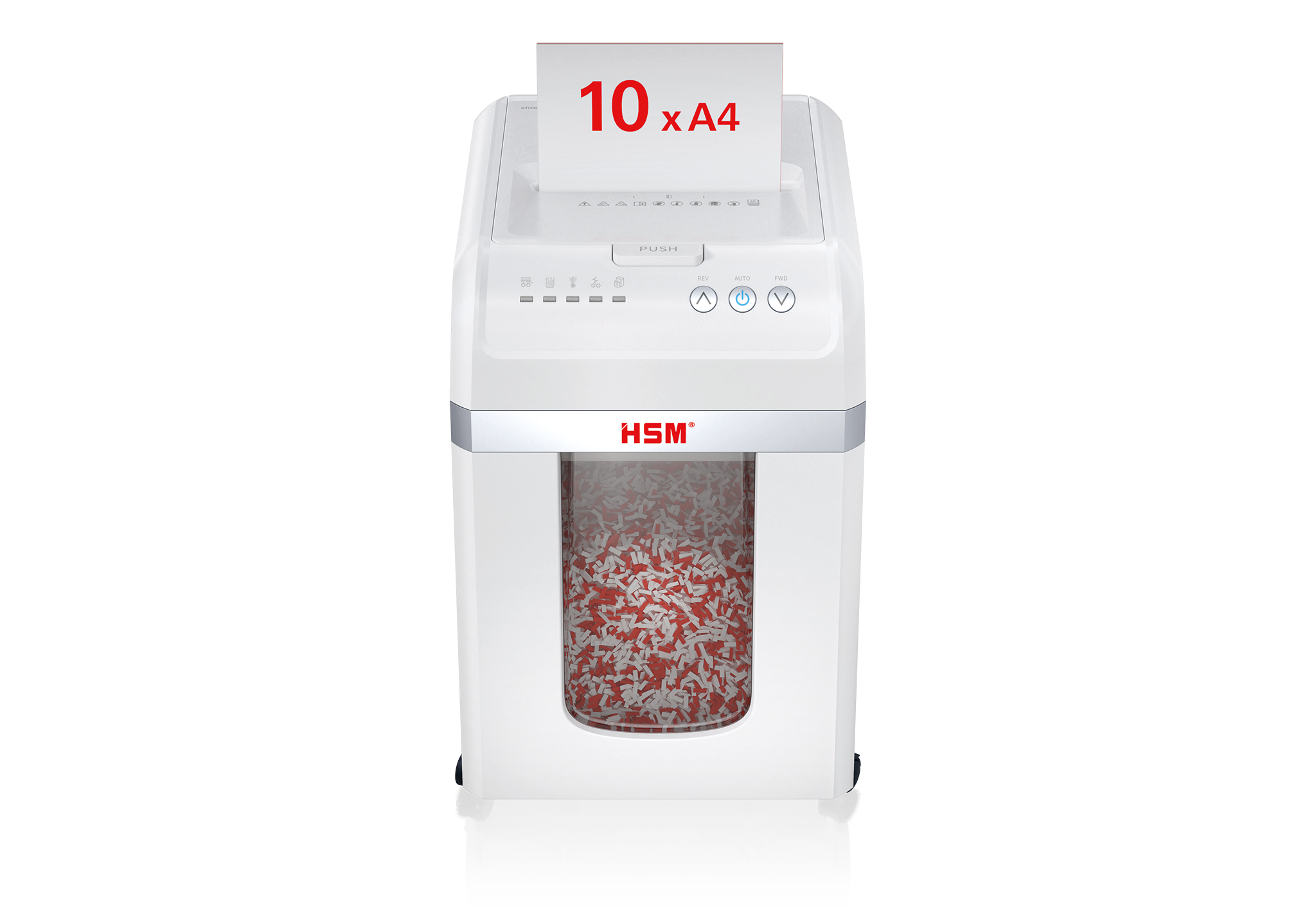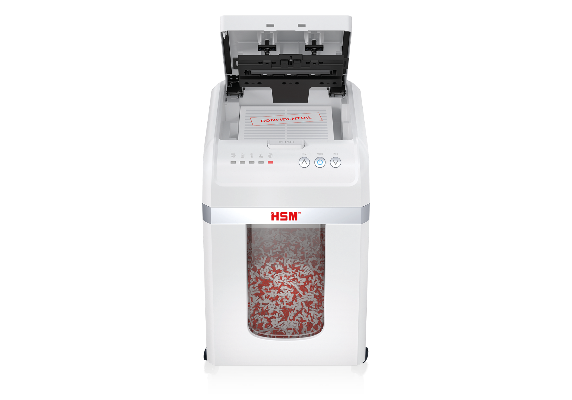 The fully automatic document shredder gives you effortless data security. Just insert the stack of paper, close the top - and the machine does the rest. The Autofeed document shredder shreds up to 200 sheets into particles which conform to security level P-4 (4x12 mm), therefore ensuring GDPR compliant data security.